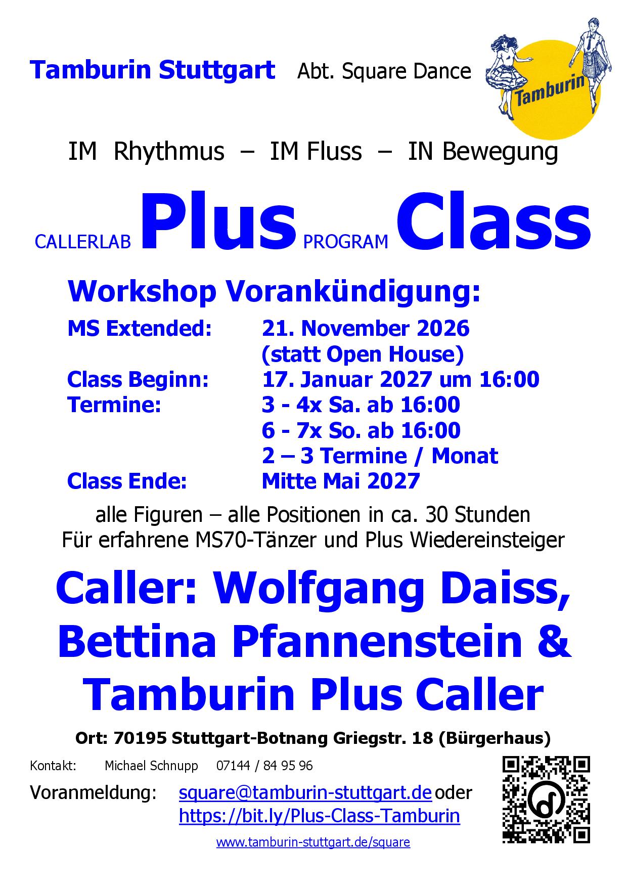 "Anker Caller" war Christian Reiff. Er führte die Class zusammen mit den anderen Tamburin Plus Callern durch. (Flyer Plus Class 2025 Seite 1)(Flyer Plus Class 2025 Seite 2)(Download)